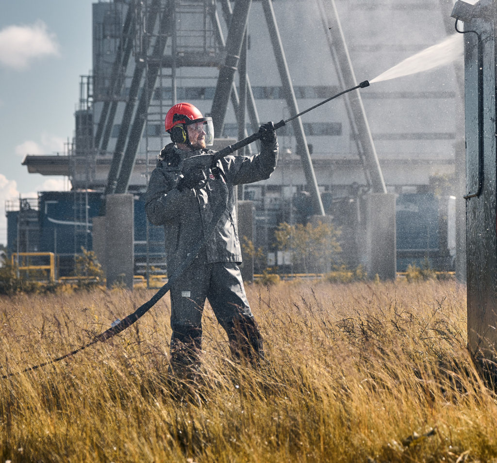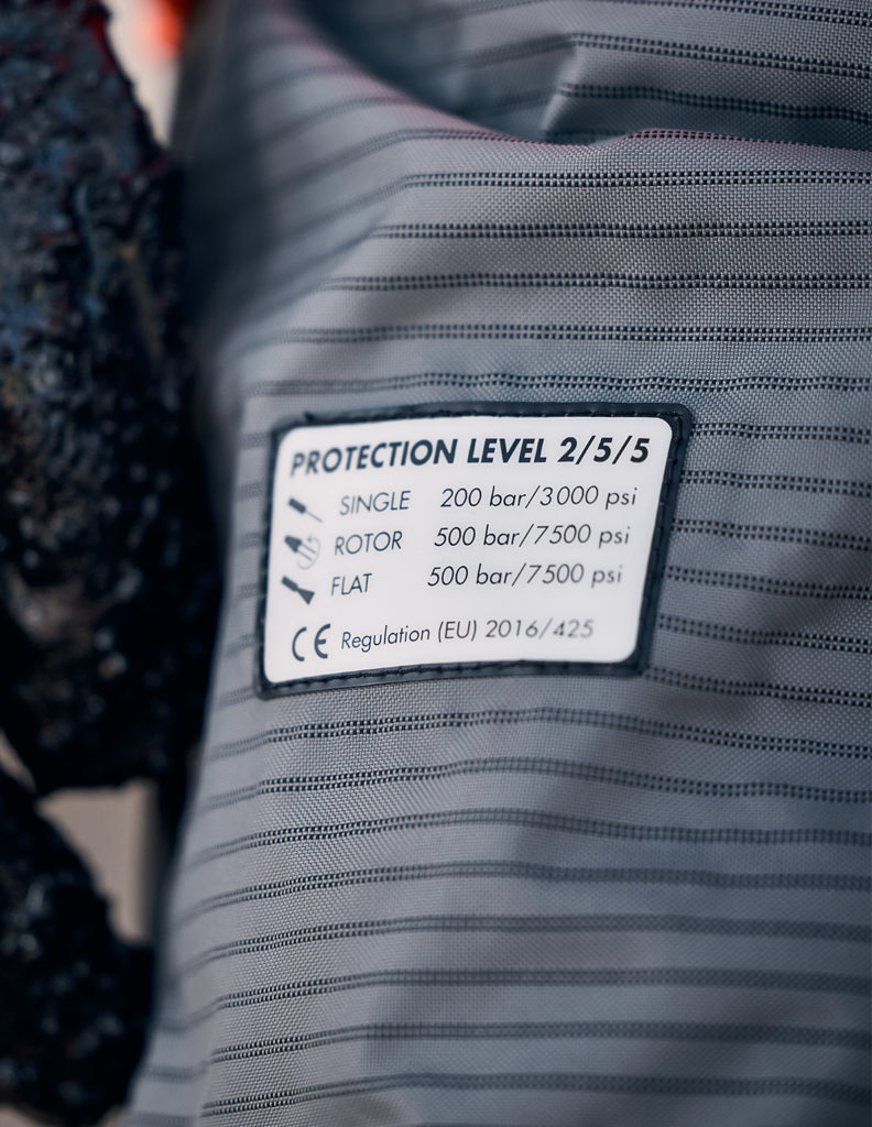 The outer shell of the PPE is dirt and water repellent, keeping the operator dry and light. The fabrics have a very high abrasion resistance.