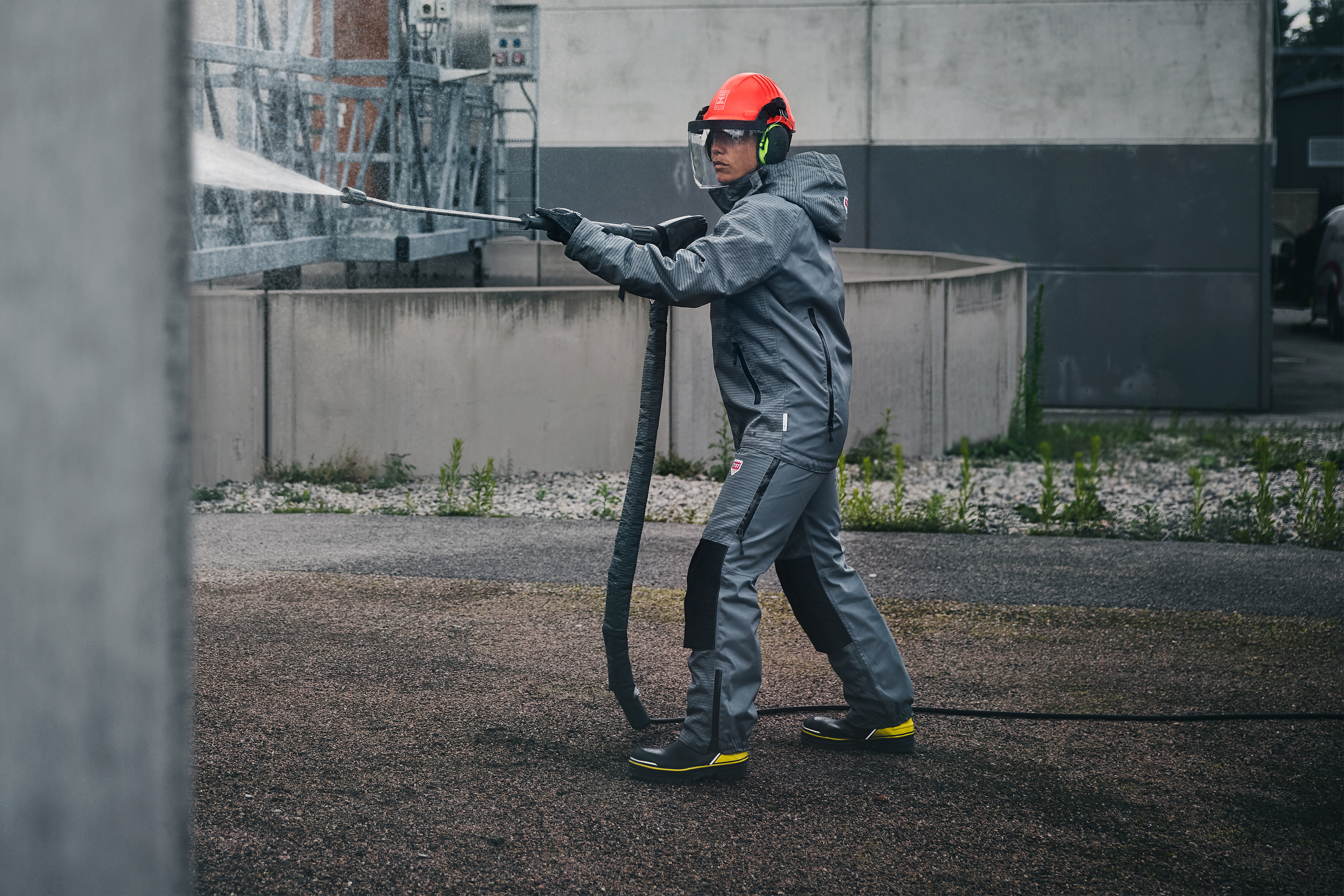 The outer shell of the PPE is dirt and water repellent, keeping the operator dry and light. The fabrics have a very high abrasion resistance.